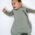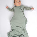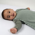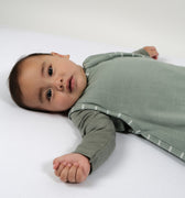 We use extra fine 100% merino wool, it's nearly four times finer than the average human hair. This means it's incredibly soft against the skin and never itchy. Merino is inherently breathable and temperature regulating, keeping babies warm in cold temperatures and cooler in warm temperatures, this makes it a great year-round daily choice as well as being perfect for sleeping in. It also wicks excess moisture away from the skin, is hypoallergenic, and odour resistant, keeping skin comfortable and dry day and night. Merino wool is also an environmentally responsible choice, being a natural, renewable, and biodegradable fibre.