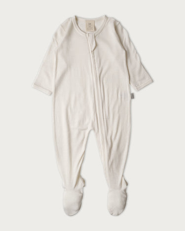 We use extra fine 100% merino wool, it's nearly four times finer than the average human hair. This means it's incredibly soft against the skin and never itchy. Merino is inherently breathable and temperature regulating, keeping babies warm in cold temperatures and cooler in warm temperatures, this makes it a great year-round daily choice as well as being perfect for sleeping in. It also wicks excess moisture away from the skin, is hypoallergenic, and odour resistant, keeping skin comfortable and dry day and night. Merino wool is also an environmentally responsible choice, being a natural, renewable, and biodegradable fibre.