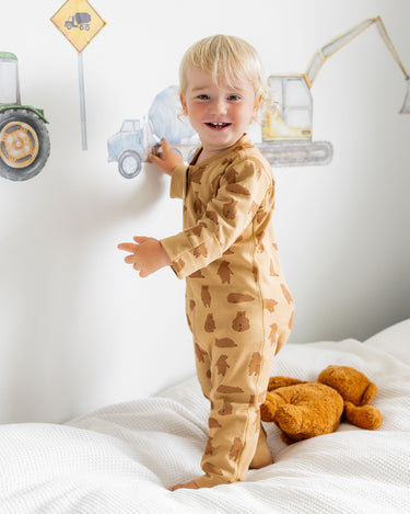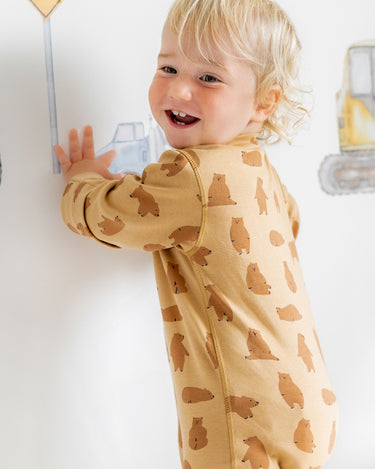 Footless Printed Onesie Zipsuit - Chubby Bear