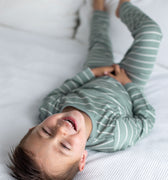 We use extra fine 100% merino wool, it's nearly four times finer than the average human hair. This means it's incredibly soft against the skin and never itchy. Merino is inherently breathable and temperature regulating, keeping babies warm in cold temperatures and cooler in warm temperatures, this makes it a great year-round daily choice as well as being perfect for sleeping in. It also wicks excess moisture away from the skin, is hypoallergenic, and odour resistant, keeping skin comfortable and dry day and night. Merino wool is also an environmentally responsible choice, being a natural, renewable, and biodegradable fibre.
