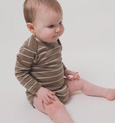 We use extra fine 100% merino wool, it's nearly four times finer than the average human hair. This means it's incredibly soft against the skin and never itchy. Merino is inherently breathable and temperature regulating, keeping babies warm in cold temperatures and cooler in warm temperatures, this makes it a great year-round daily choice as well as being perfect for sleeping in. It also wicks excess moisture away from the skin, is hypoallergenic, and odour resistant, keeping skin comfortable and dry day and night. Merino wool is also an environmentally responsible choice, being a natural, renewable, and biodegradable fibre.