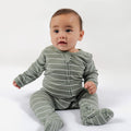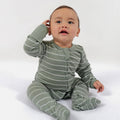 Merino Footed Onesie - Sage Stripe