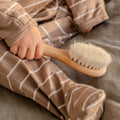 With luxuriously soft fine goats hair bristles, our baby brush is perfectly gentle, yet effective tool for supporting baby's well-being. Carefully exfoliate dry skin, promote blood flow and prevent cradle cap, all whilst providing a nurturing massage for your little one.